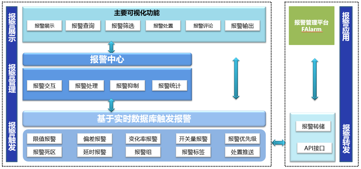 通過數(shù)據(jù)庫配置執(zhí)行、后臺處理、前端展示的模式確保報警觸發(fā)的實時性。報警多級別、多類型、多結(jié)構(gòu),以及多客戶端顯示/確認的設(shè)計便于客戶高效處理和篩選報警信息。