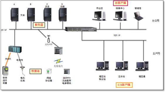 所有井場的油井均由主RTU將數據送至作業區監控中心冗余服務器中,改變了原有送到各自增壓站的鏈接方式;增壓站/接轉站、注水站、聯合站及水源井的PLC或RTU直接通過以太網將數據傳送至SCADA系統監控平臺中。