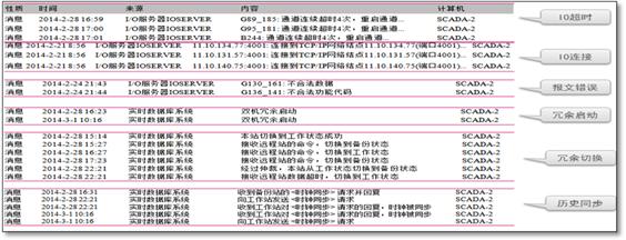 事件系統重點記錄整個SCADA系統的運行情況,在服務端與客戶端所記錄的內容方式有所不同,分別為冗余服務器日志、歷史服務器日志、客戶端操作日志。