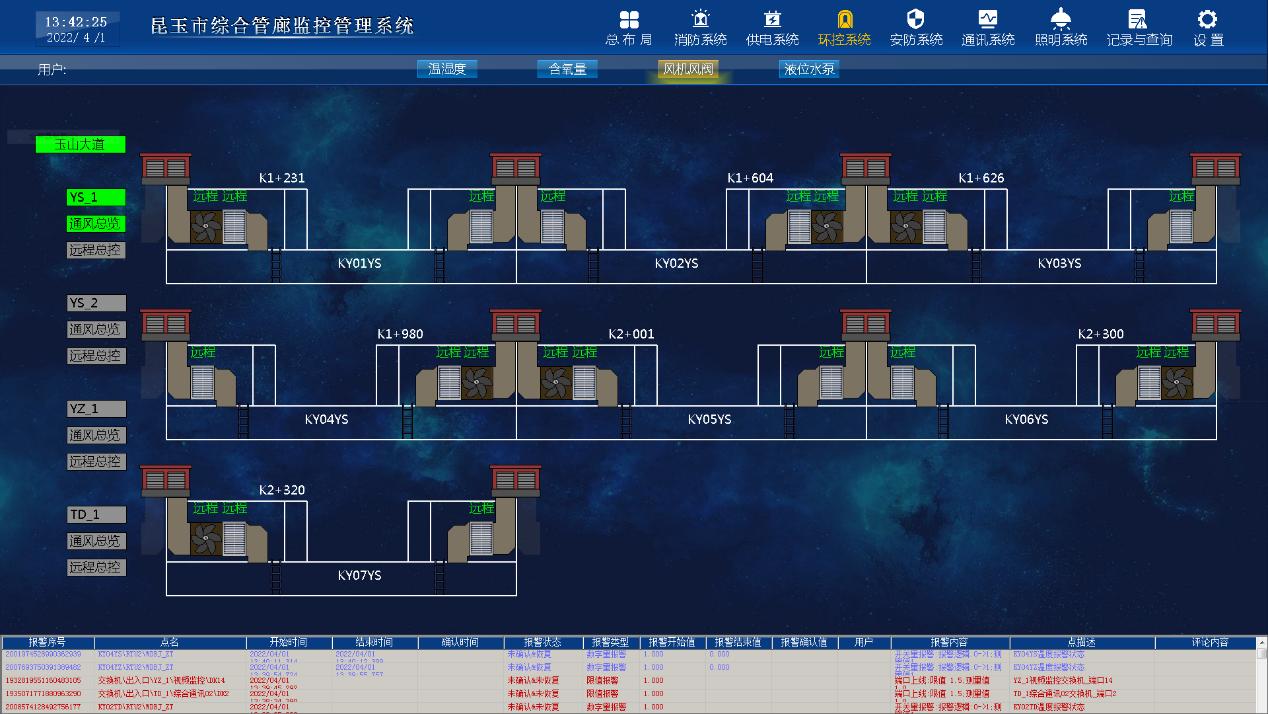 ●在火災狀態下:風機及風閥的控制由火災報警系統實現。具體須根據通風專業要求以及各季節綜合管廊周邊環境的變化,采取相應的通風控制模式。