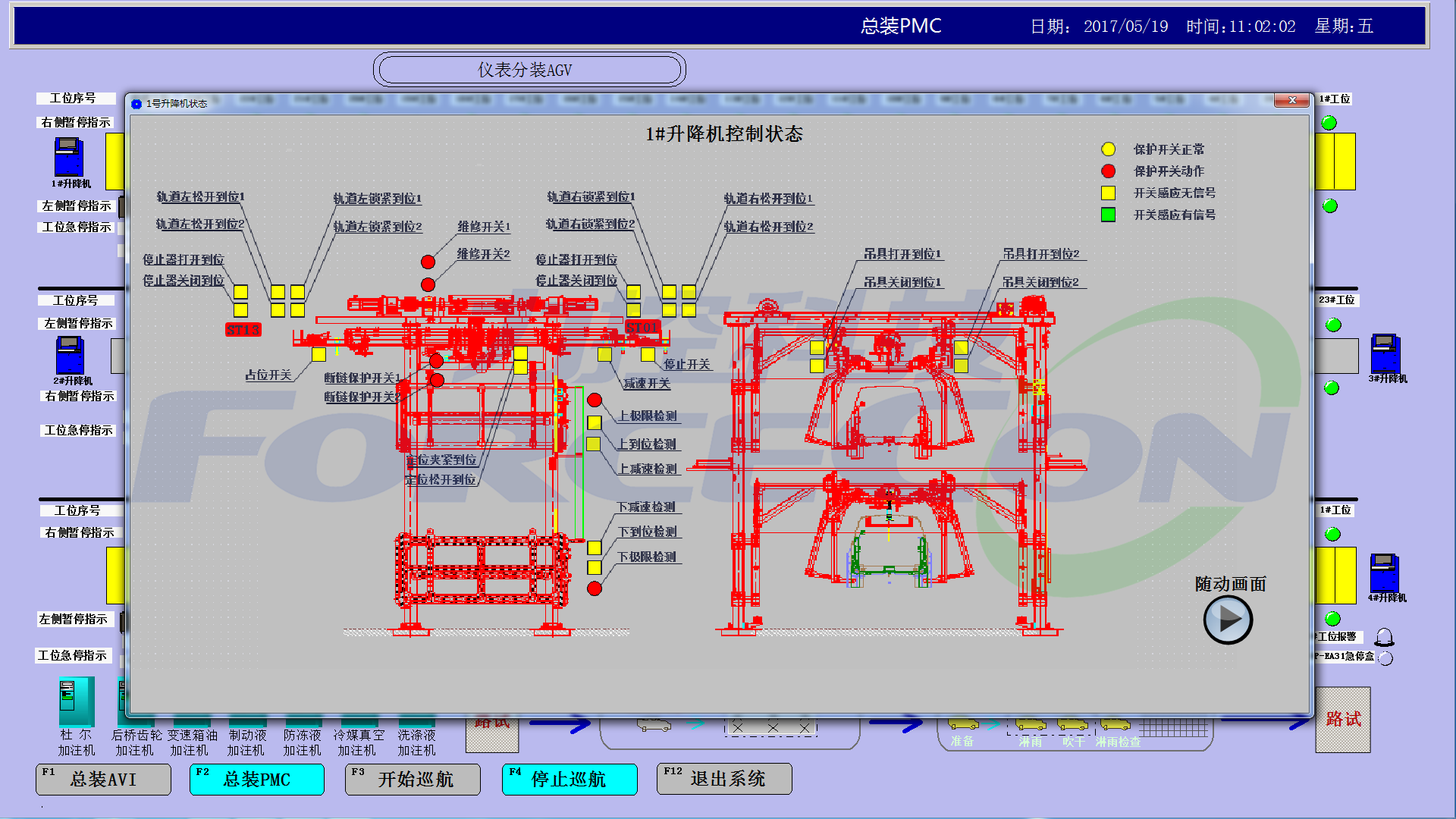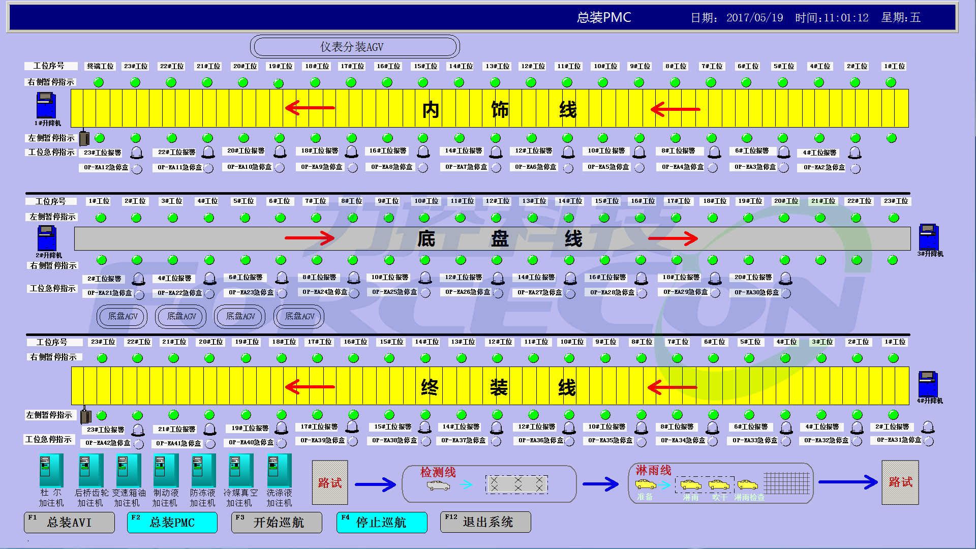 AVI車輛跟蹤實(shí)現(xiàn)對(duì)現(xiàn)場(chǎng)車輛數(shù)量及車輛信息(訂單編號(hào),工單編號(hào),物料編碼,物料名稱,VIN碼,顏色,工位,車型等)的實(shí)時(shí)信息采集在CCR中控平臺(tái)的展現(xiàn)實(shí)現(xiàn)車輛動(dòng)態(tài)生產(chǎn)過(guò)程中的可視化,實(shí)時(shí)顯示AGV運(yùn)行狀態(tài)信息、工位詳細(xì)車型信息等。