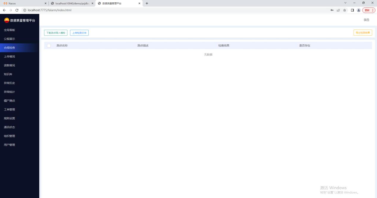 合規檢查功能為檢測測點點名是否符合規范要求,檢測一批需要檢測的測點需先下載測點模板,將需檢測的測點模板寫入進測點模板后在下載到該界面即可檢測。