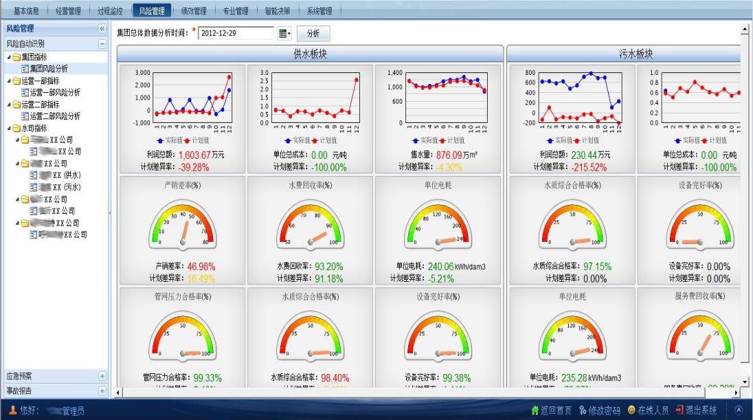 以污水處理站為核算單元,當(dāng)成本臨近預(yù)算最高值時(shí)利用預(yù)警功能設(shè)計(jì)達(dá)到超預(yù)算預(yù)警的目的。以污水處理站為核算單元,當(dāng)物資儲備不足時(shí)利用預(yù)警功能設(shè)計(jì)達(dá)到超預(yù)算預(yù)警的目的。以污水處理站為核算單元,當(dāng)水質(zhì)、水量、電路、設(shè)備運(yùn)行參數(shù)異常時(shí)通過報(bào)警功能設(shè)計(jì)起到警示作用。