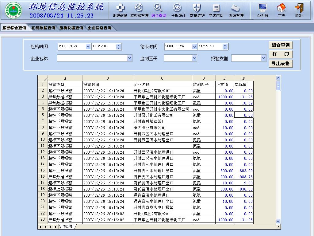 提供多種條件查詢方式和查詢結(jié)果分類、分項(xiàng)排序、統(tǒng)計(jì)最大值、最小值、平均值、匯總值等分析處理功能。提供統(tǒng)計(jì)各類監(jiān)測數(shù)據(jù)功能,如流量統(tǒng)計(jì);COD、氨氮濃度分析;COD、氨氮排放總量統(tǒng)計(jì);煙氣流量統(tǒng)計(jì);煙氣、煙塵、CO、SO2、NOx濃度分析;煙氣、煙塵、CO、SO2、NOx排放總量統(tǒng)計(jì)等。提供查詢結(jié)果打印功能。