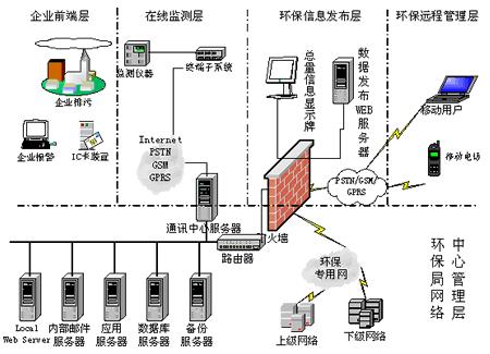 1)整合GPRS/CDMA/寬帶通訊技術(shù),實(shí)時(shí)監(jiān)視重點(diǎn)污染源瞬時(shí)流量、累積流量、污染物濃度、污染物排放總量等數(shù)據(jù),實(shí)時(shí)控制現(xiàn)場設(shè)備的運(yùn)行狀態(tài),將全市大氣和水自動(dòng)監(jiān)測數(shù)據(jù)傳輸?shù)江h(huán)保局中心控制室。