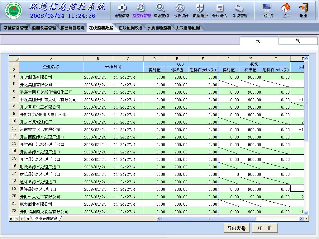 可以在線查看、查詢、獲取各種模擬設(shè)備和開關(guān)的最新數(shù)據(jù)、狀況。并可以實(shí)現(xiàn)定時(shí)監(jiān)測(TOC、COD、PH、流量等一次性儀表在一段時(shí)間內(nèi),按照固定的周期進(jìn)行數(shù)據(jù)采集)。中心控制室可以實(shí)時(shí)顯示水污染點(diǎn)源的污水瞬時(shí)流量和累積流量,COD或氨氮的濃度和排放總量等數(shù)據(jù);能夠?qū)ΡO(jiān)測現(xiàn)場設(shè)備進(jìn)行遠(yuǎn)程啟動(dòng)、設(shè)定工作時(shí)間、調(diào)整工作周期、數(shù)據(jù)二次查詢等遠(yuǎn)程操作,并將分析結(jié)果和設(shè)備運(yùn)行日志記錄于環(huán)保局中心數(shù)據(jù)中。中心控制室可以實(shí)時(shí)顯示大氣污染點(diǎn)源的煙氣流量和排放總量,煙氣、煙塵、CO、SO2、?NOx的濃度和排放總量等數(shù)據(jù)。