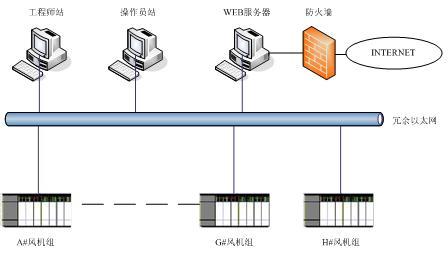 所有風電機組通過光纖以太網連接至主控室的上位機操作員站,實現監控整個風場,上位機監控軟件具有如下功能: