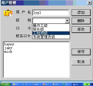 用戶可以建立不同級別多個用戶,級別和用戶名分別對應于系統中的變量,利用這兩個變量的值可以自由設置操作權限。