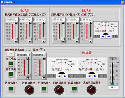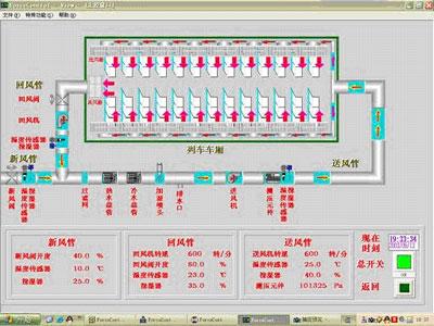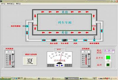 這套系統所用軟件為力控監控組態軟件ForceControl,主要模擬列車車廂和夾套的空調工況,以及設計完全針對實驗臺的溫度、風速的實時檢測和報表系統。