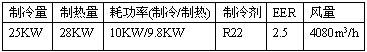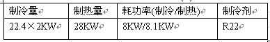 選用三菱重工海爾RFU25WD型風管機兩臺,室內機組的冷媒為室外機組的制冷劑 。其部分參數如下: