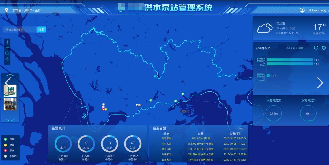 泵站信息管理系統集成了主設備狀態監測、建筑物安全監測、視頻監控系統、門禁系統、環境監測等多個功能模塊。該系統實時監測泵站設備運行狀態和建筑物的安全狀況,同時提供視頻監控和門禁管理功能,確保泵站安全運行。此外,系統還能監測泵站周圍環境參數,為制定科學的供水計劃提供依據,實現水資源合理利用。