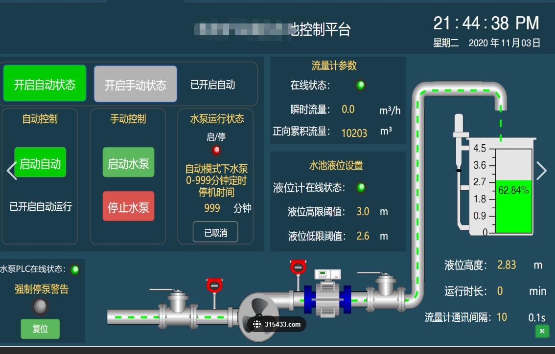 配置高性能服務器與數據存儲設備,用于接收、處理、存儲泵站數據。功能完備的組態監控軟件平臺具備直觀的人機交互界面,展示泵站的工藝流程、設備運行狀態、實時數據曲線等信息,方便操作人員實時了解泵站運行情況,實現遠程控制操作。