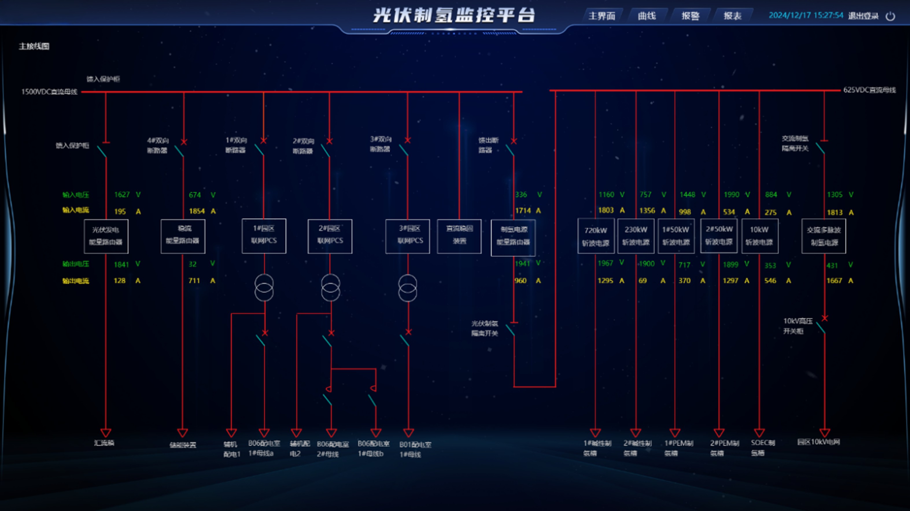 力控采用云端綜合可視化平臺FSmartWorx與監控組態軟件ForceControl深度融合,為項目打造光伏制氫可視化監控系統,覆蓋光伏發電、直流微電網、離網制氫、儲能、熱電聯供、加氫站、園區充電樁等七大模塊,實現集中可視化監控,滿足用戶對整體管控的要求。