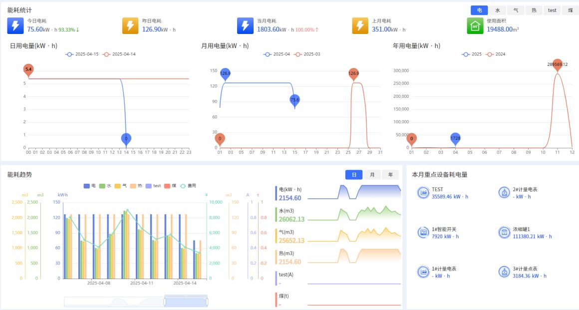 實時接入水、電、氣、暖通等子系統,構建統一數據中心。按區域、時間、設備等多維度統計與分析能耗數據,自動生成能耗報表及趨勢,為企業節能降耗提供精準數據支撐。同時,通過Web API、OPC UA、OPC等接口與第三方MES系統集成,打通壁壘,實現數據共享。