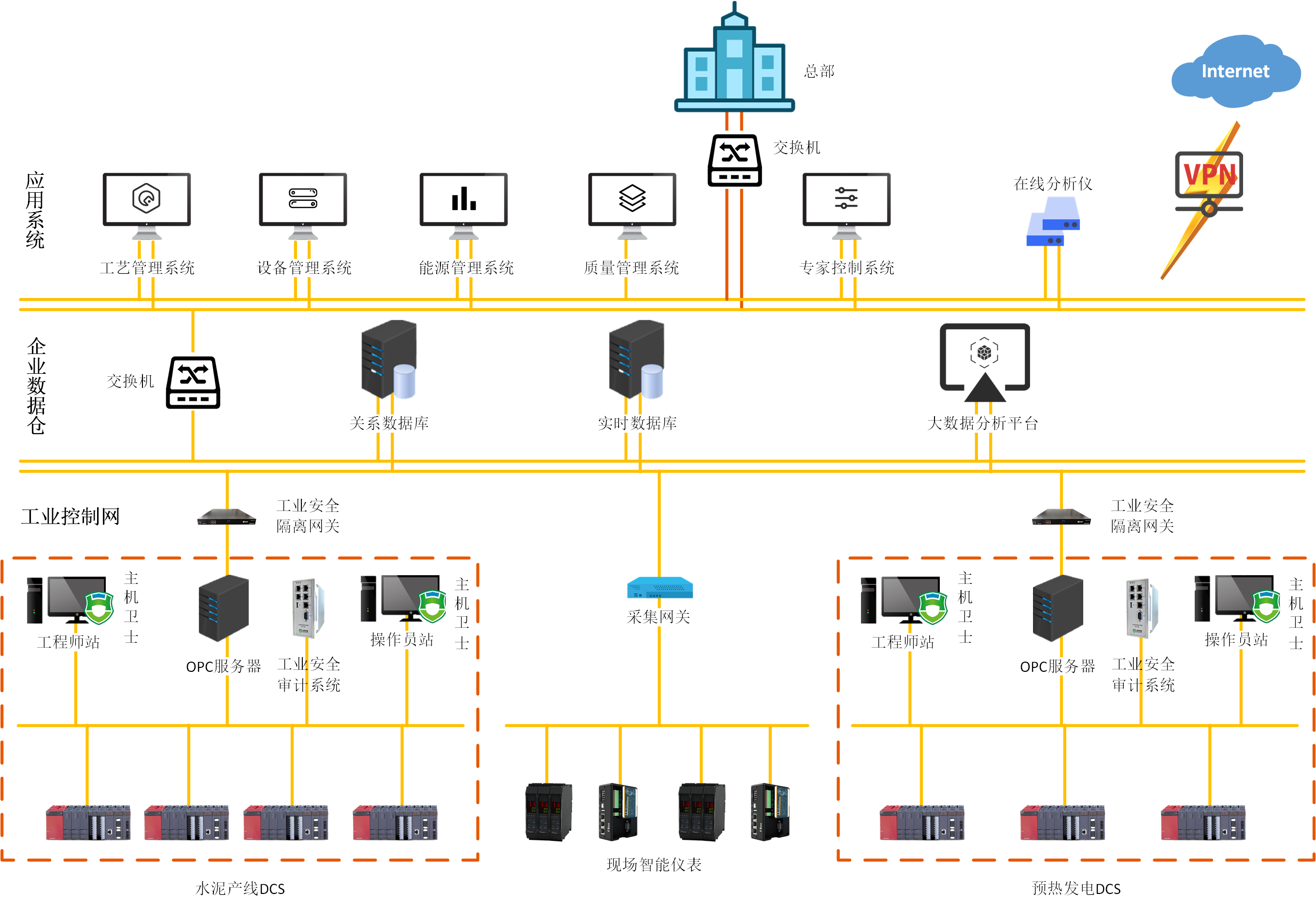 金隅水泥需要從網(wǎng)絡(luò)層、主機(jī)層、系統(tǒng)層、應(yīng)用層和管理制度等多方面建立工業(yè)生產(chǎn)系統(tǒng)的網(wǎng)絡(luò)信息安全防護(hù)體系,提高系統(tǒng)整體風(fēng)險(xiǎn)防御等級(jí),保證整個(gè)智能制造系統(tǒng)穩(wěn)定有序的運(yùn)行。