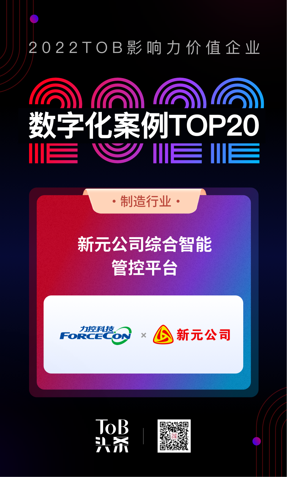 遴選具有代表性的的企業(yè)數(shù)字化案例,為更多亟待轉型的企業(yè)提供借鑒,「ToB行業(yè)頭條」聯(lián)合3W集團與行業(yè)專家從技術先進性、案例代表性、行業(yè)推廣性等多個維度對參評案例進行綜合評選,力控科技的新元公司綜合智能管控平臺從百家案例中脫穎而出,入選《2022中國ToB行業(yè)年度調(diào)研·數(shù)字化轉型案例TOP20》。