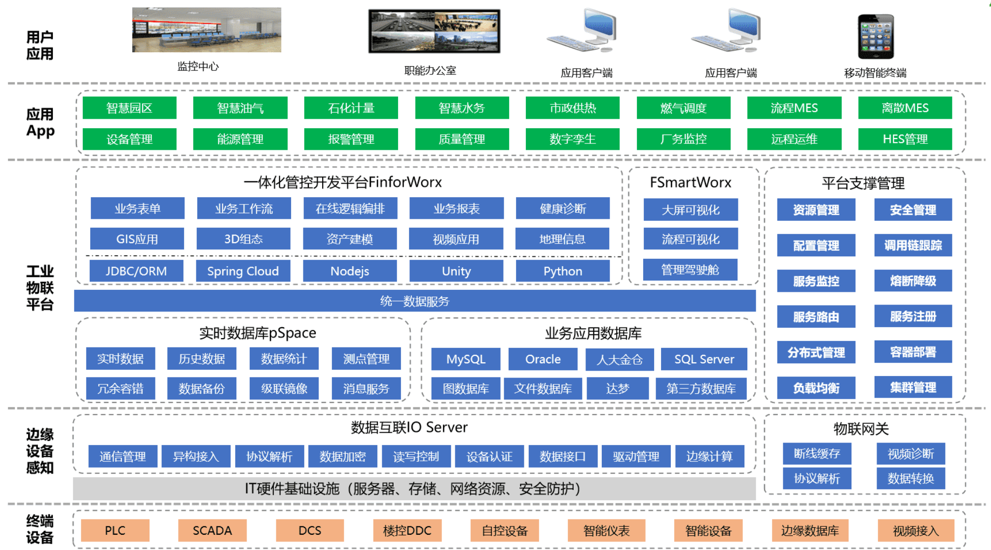 力控管控一體化平臺從工業物聯的海量時序數據采集、處理、 存儲、分析、應用等多個層面,建立強大的生產調度指揮系統,解決用戶的生產監控、設備管理、能源管控、先進制造、安全管理等業務領域核心問題,為生產決策提供多層次業務支撐,構建穩敏雙態系統。