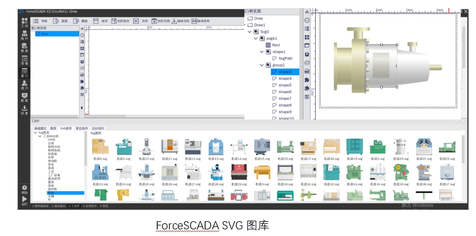 ForceSCADA軟件的SVG圖庫采用XML的文本格式,支持使用腳本進行編輯,交互性強。