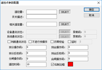 2. 關聯(lián)遙控量及遙信量,根據(jù)實際通信規(guī)約,填寫預分/預合操作碼、返校碼及分閘/合閘操作碼,可根據(jù)實際業(yè)務選擇雙席校驗;