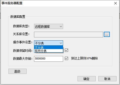 在SCADA系統中,各服務器或者客戶端站點的事件分散在本地存儲,導致故障排查需跨站點調取,耗時費力。如果將所有事件都歸一存儲,內存占用過多反而不便查找關鍵信息,實際上,用戶最關注的是操作類事件,期望明確看到設備賦值操作是否成功。因此,事件服務提供遠程集中存儲功能,并支持按條件存儲,例如客戶希望操作類事件存檔多久、是否按月分表等,以便故障排查時快速調取。