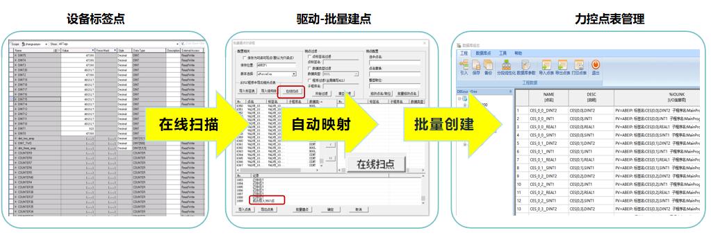 該功能涵蓋四大核心模塊:PLC標(biāo)簽在線掃描、PLC點表文件離線導(dǎo)入、數(shù)據(jù)庫點表映射及點表層級管理。