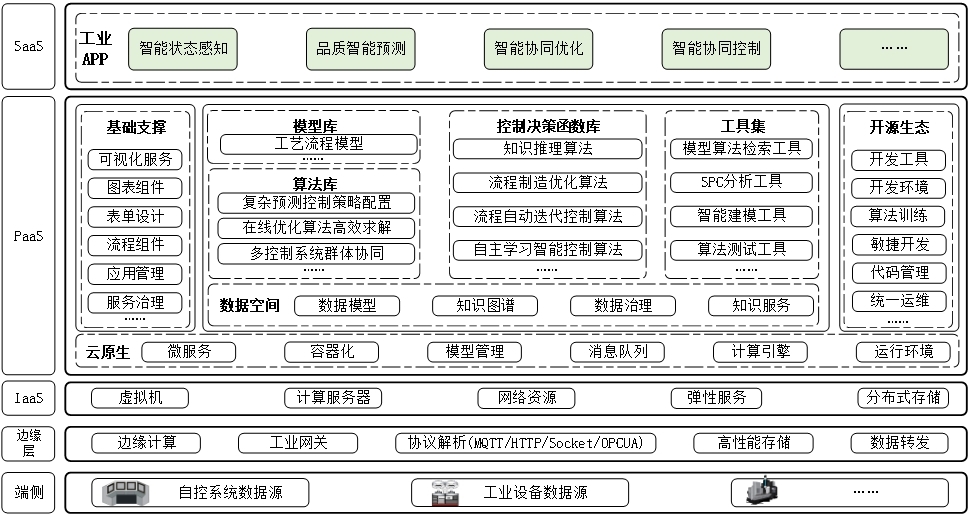 基于開放數據庫連接訪問、可視化多元接口技術,通過工業領域知識圖譜文件管理與深度神經網絡算法進行機理與聚類分析,采用多元素融合與分析機制,構建可拓展的控制決策函數庫。結合函數庫和實際運行指標,對控制系統的設定值進行自適應調整,實現云-邊-端的閉環聯動。