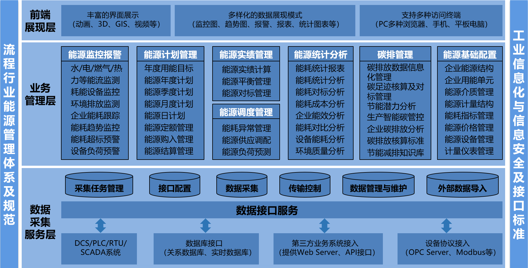 能源管控系統集能源的管理、生產、調度、控制于一體,變條塊分割的能源監控和調度為扁平化的監控和調度,變分散的基礎能源管理為集中統一的能源管理。
