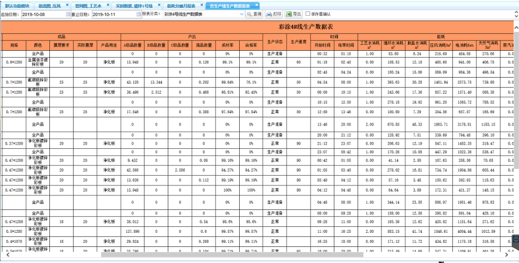 依據對各產線產品的生產批次數據的完整記錄,生成產品批次生產數據報表,通過該報表可以查看每一生產批次的產量、能耗、相關生產工藝參數等完整信息,以此為依據實現批次能耗追蹤和用能分析。
