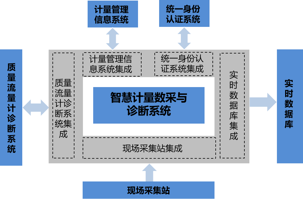 系統(tǒng)具備標(biāo)準(zhǔn)化輸出接口或數(shù)據(jù)共享接口,為上位管理系統(tǒng)提供數(shù)據(jù)集成服務(wù),可以把計(jì)量?jī)x表實(shí)時(shí)狀態(tài)信息、儀表在線率、采集完好率、報(bào)警率、處理結(jié)果信息推送到上層應(yīng)用系統(tǒng);把系統(tǒng)產(chǎn)生的重要報(bào)警推送給上位管理系統(tǒng),同時(shí)通過(guò)計(jì)量管理信息系統(tǒng)、MES系統(tǒng)等獲取基礎(chǔ)信息,用戶維護(hù)一套臺(tái)賬,通過(guò)接口實(shí)現(xiàn)信息共享調(diào)用。系統(tǒng)集成包括:現(xiàn)場(chǎng)采集站、質(zhì)量流量計(jì)診斷系統(tǒng)、實(shí)時(shí)數(shù)據(jù)庫(kù)、計(jì)量管理信息系統(tǒng)、統(tǒng)一身份認(rèn)證系統(tǒng)。