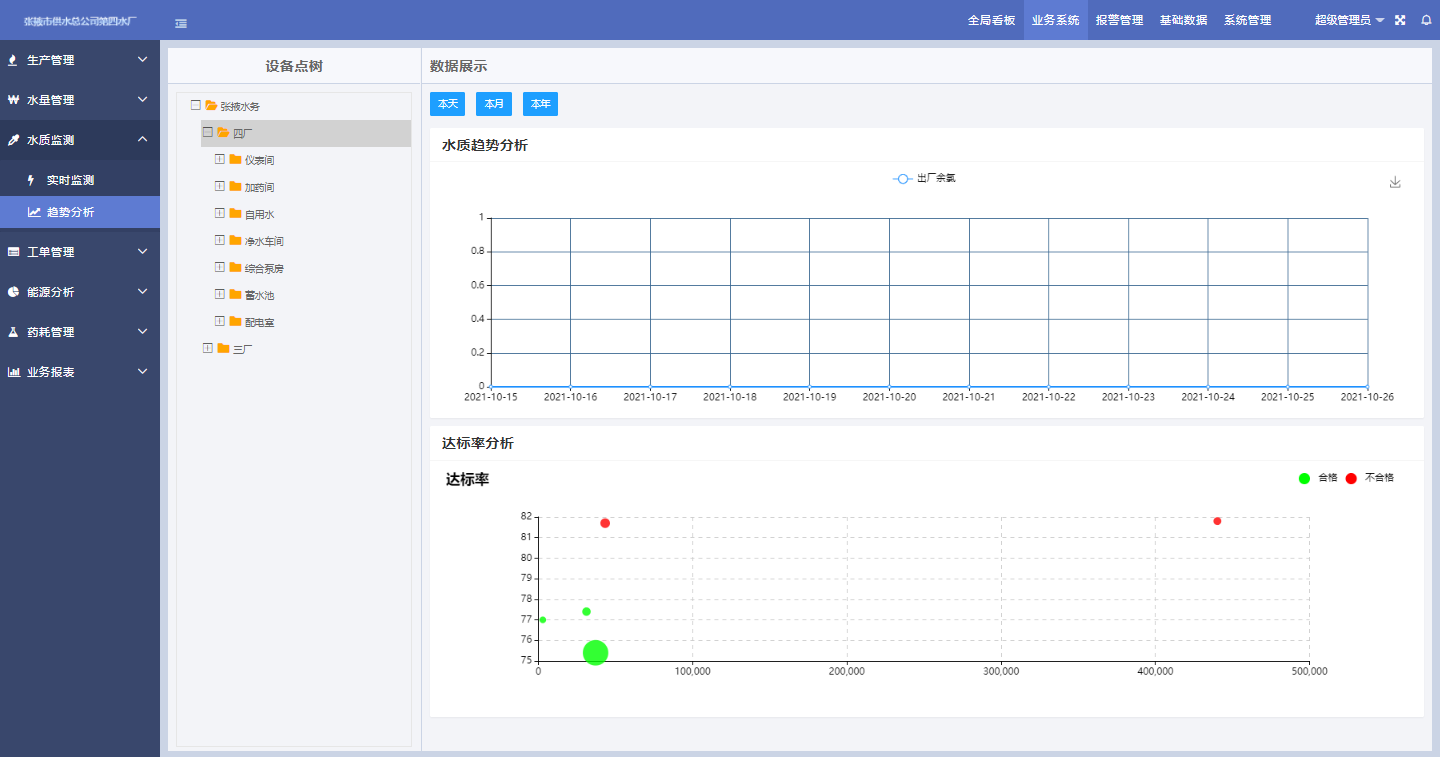 針對水廠生產(chǎn)過程和生產(chǎn)質(zhì)量報警的智能化管理,使管理人員可以第一時間了解生產(chǎn)中出現(xiàn)的異常。