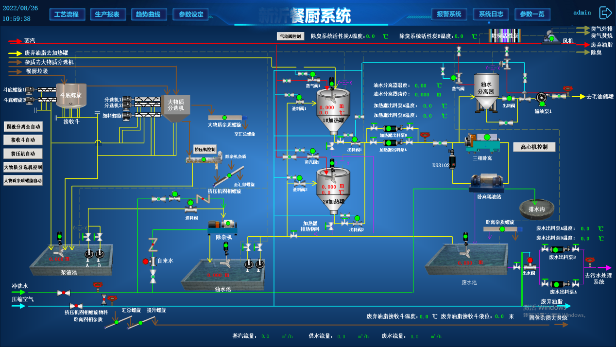 實現全廠運行數據實時采集并匯總:對各車間子系統、除臭控制系統、污水處理控制系統、沼氣凈化控制系統、柴油發電機控制系統、鍋爐房控制系統、儀表監測系統、等子系統數據進行實時采集,并將數據進行匯總;