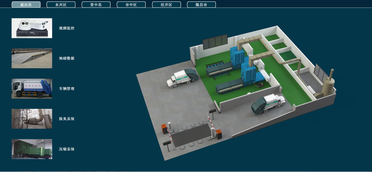 通過對接現有的轉運站獲取各垃圾轉運站的視頻數據和計量數據實現城市垃圾轉運站作業情況及車輛進出情況的全過程智能化監管;