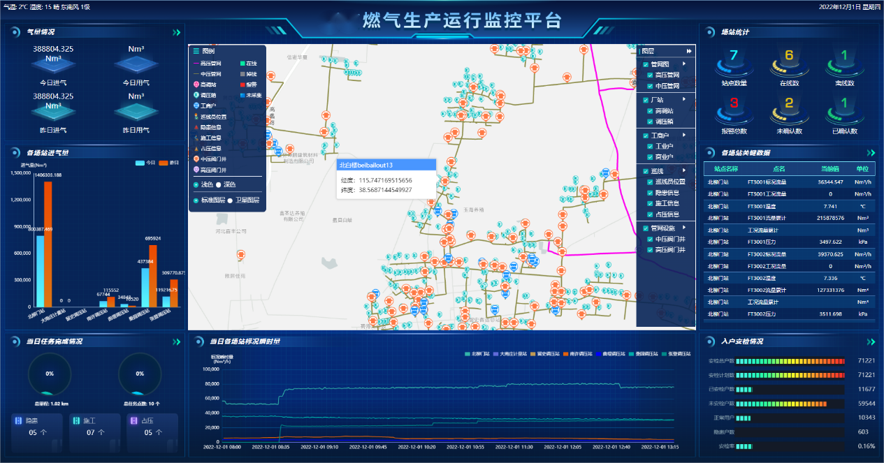 2、?通過(guò)燃?xì)夤芫W(wǎng)的平衡與優(yōu)化、遠(yuǎn)程運(yùn)維與保養(yǎng),減少輸配過(guò)程中的損失,最大限度延長(zhǎng)管網(wǎng)的使用壽命,保障輸配系統(tǒng)安全、穩(wěn)定運(yùn)行,降低企業(yè)生產(chǎn)風(fēng)險(xiǎn),提高企業(yè)的運(yùn)營(yíng)效益。