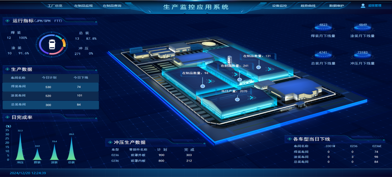 * 實(shí)現(xiàn)了對(duì)生產(chǎn)線上各個(gè)環(huán)節(jié)的實(shí)時(shí)監(jiān)控,包括焊接、涂裝、總裝等關(guān)鍵工序。