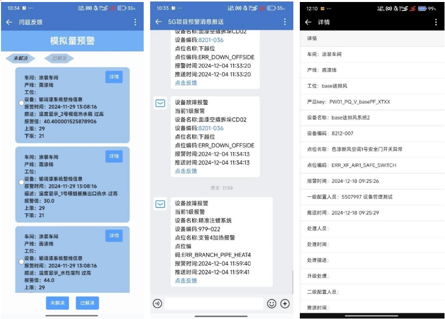 當(dāng)在制品涉及的設(shè)備、物料以及外圍系統(tǒng)出現(xiàn)異常時(shí),系統(tǒng)自動(dòng)發(fā)布任務(wù)到相應(yīng)工作人員,及時(shí)告知異常詳情并通知處理,優(yōu)化生產(chǎn)調(diào)度、提高生產(chǎn)效率。